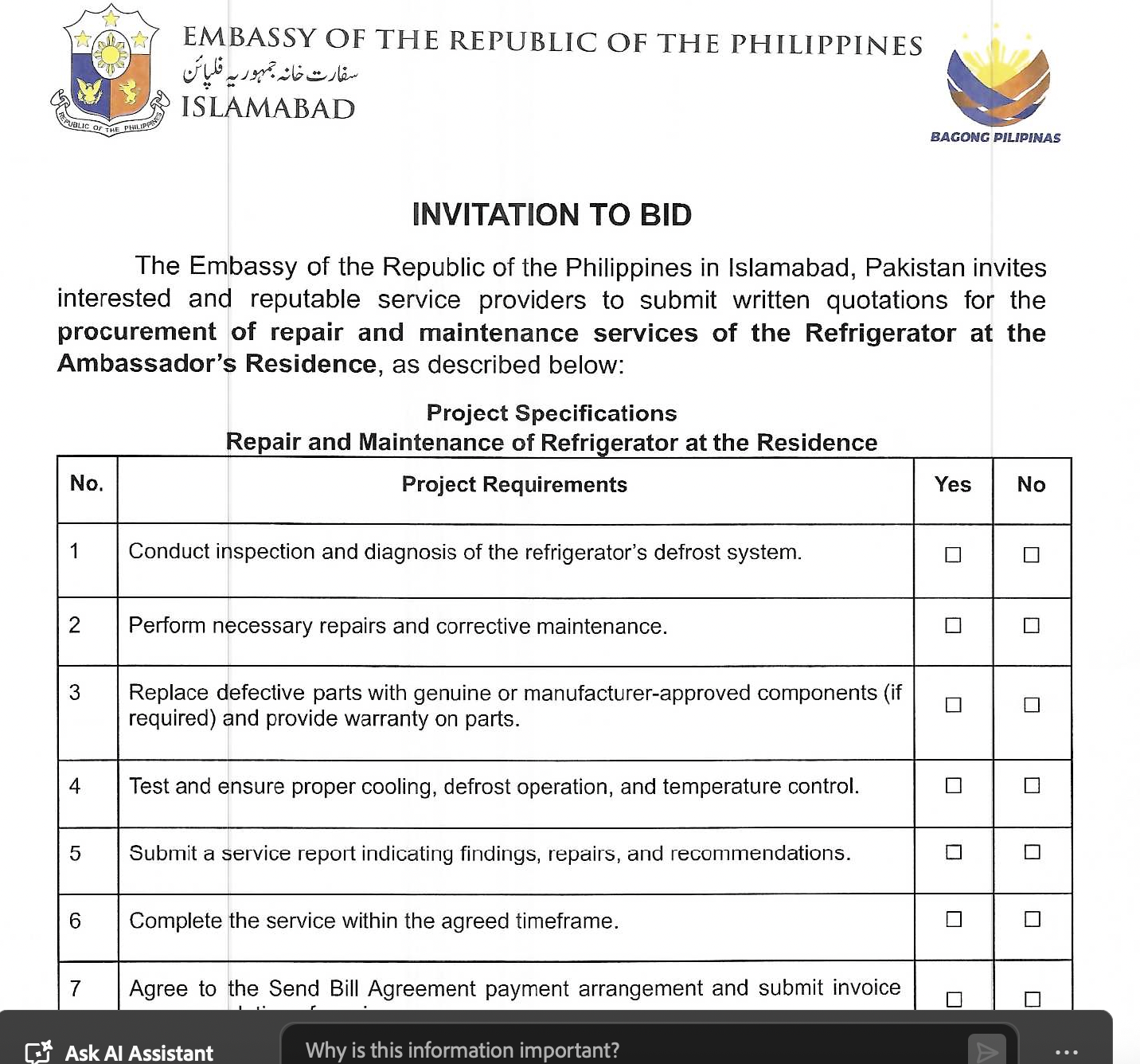 Invitation to Bid for Procurement of Repair and Maintenance Services |