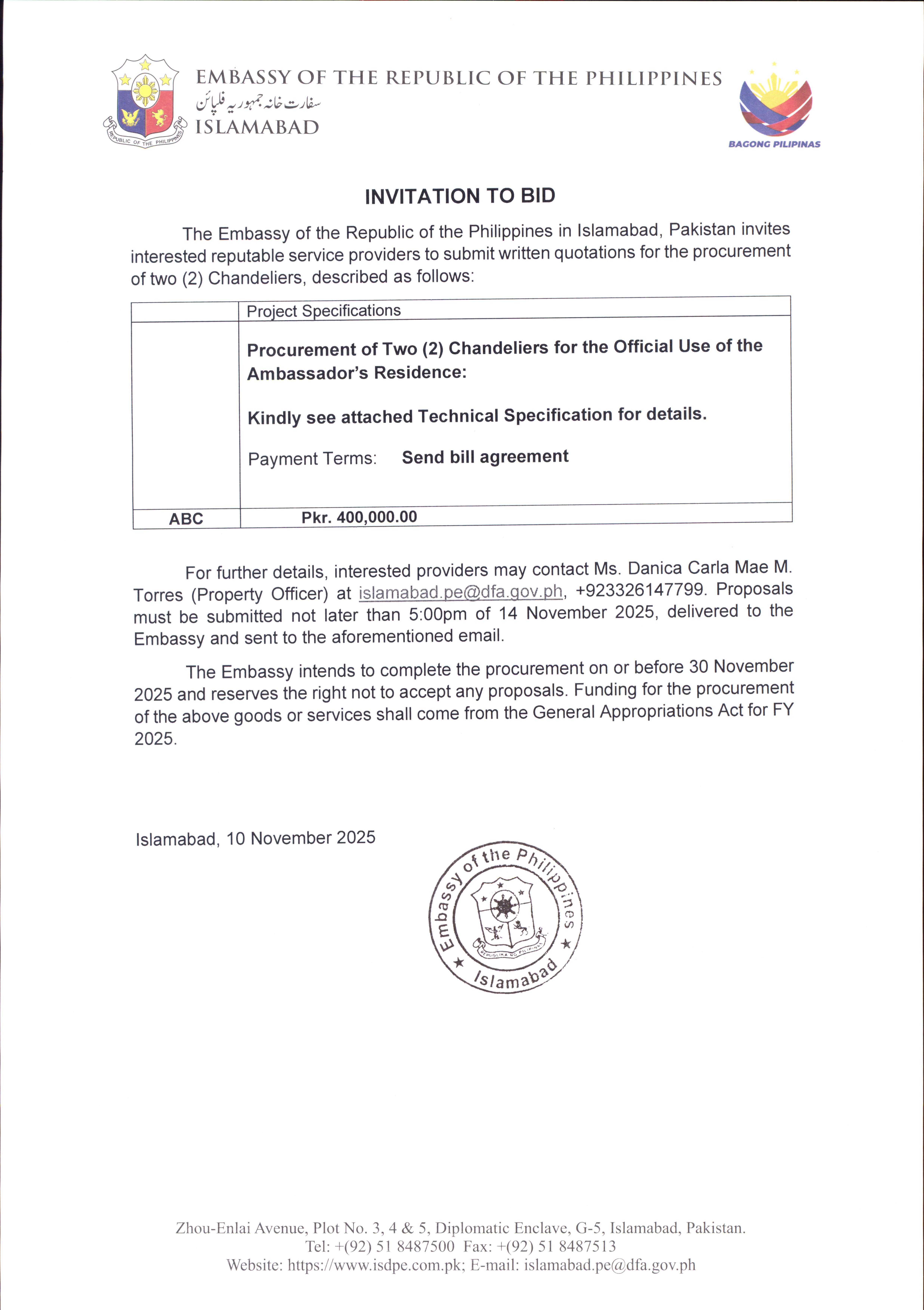 Embassy of the Republic of the Philippines Islamabad, Pakistan |