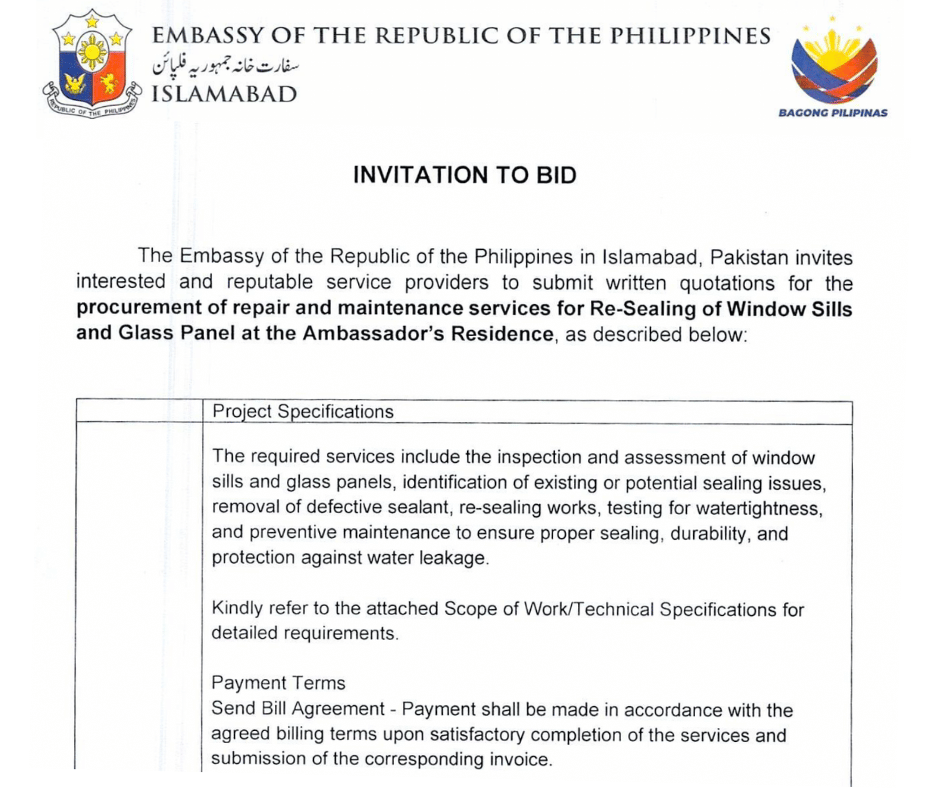 Invitation to Bid for Procurement of Repair and Maintenance Services |