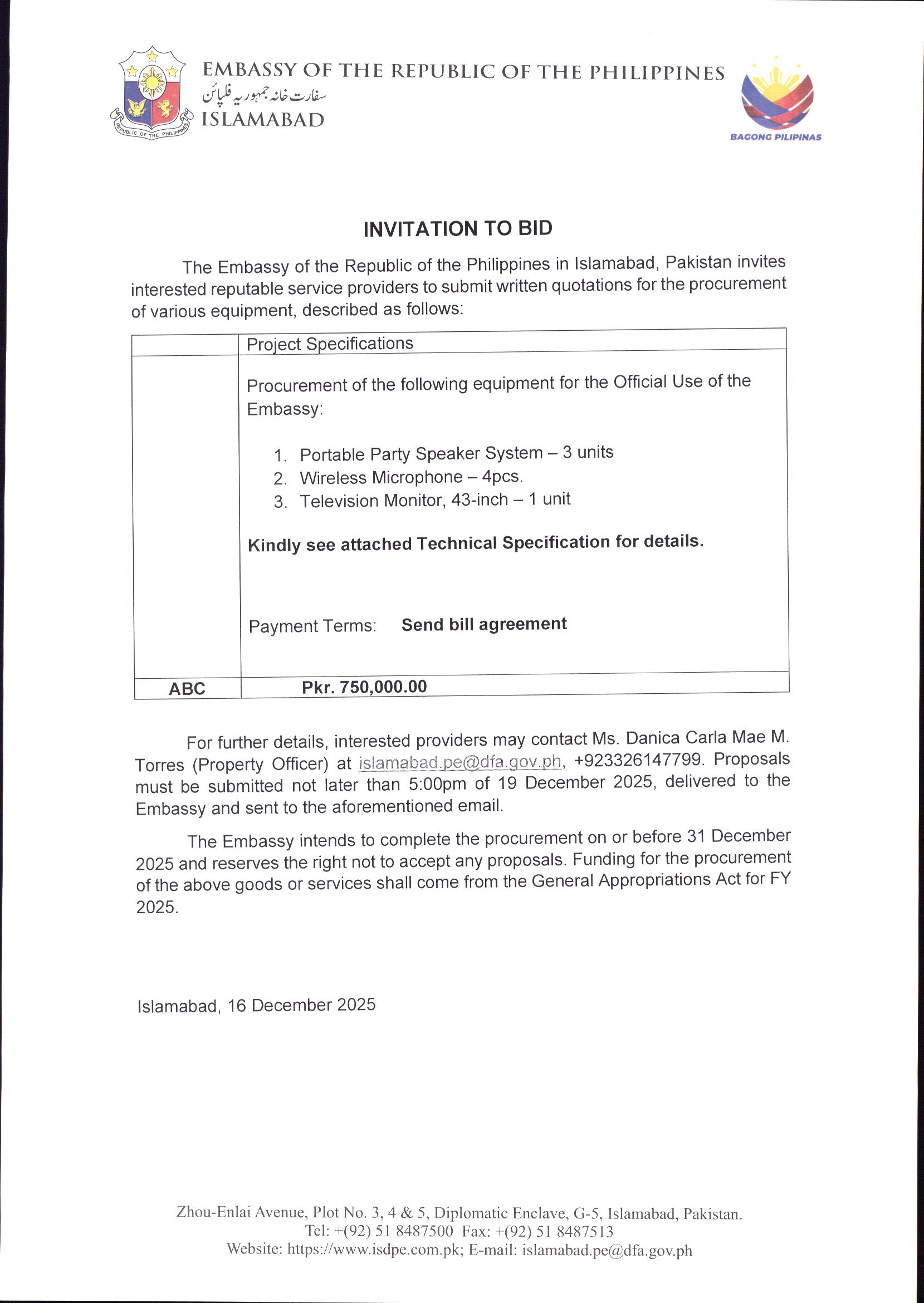 Embassy of the Republic of the Philippines Islamabad, Pakistan |